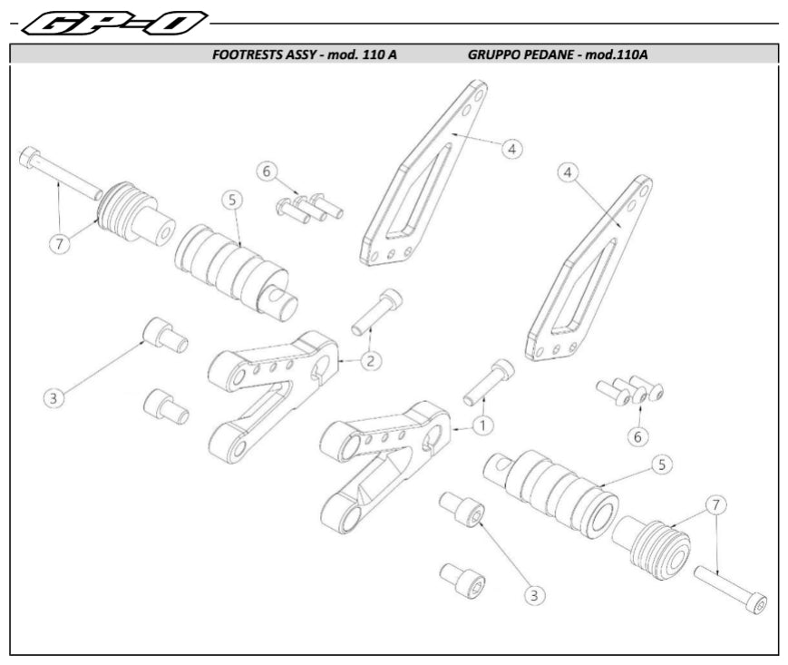 Ricambi Ohvale . GRUPPO PEDANE - mod.110A . modello telaio GP-0