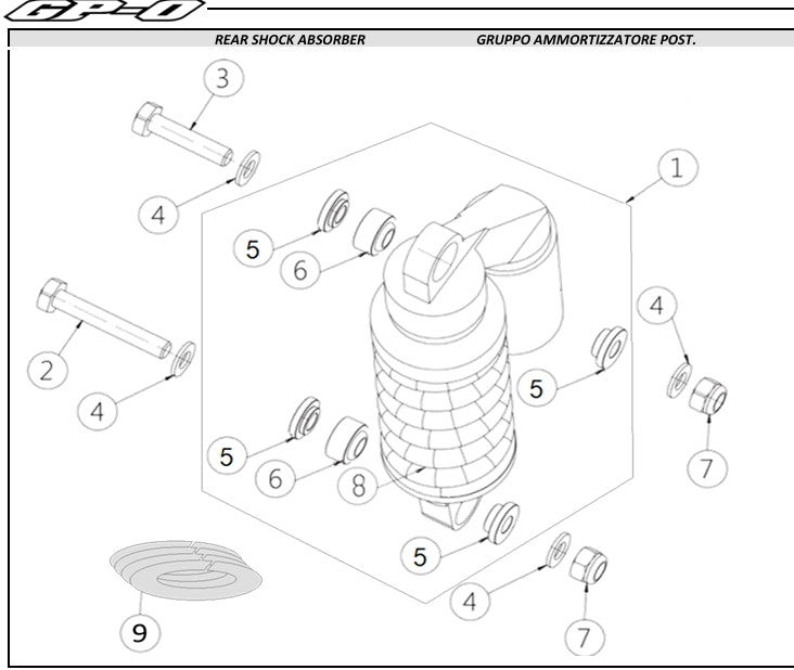Ricambi Ohvale . GRUPPO AMMORTIZZATORE POST. . modello telaio GP-0 EVO